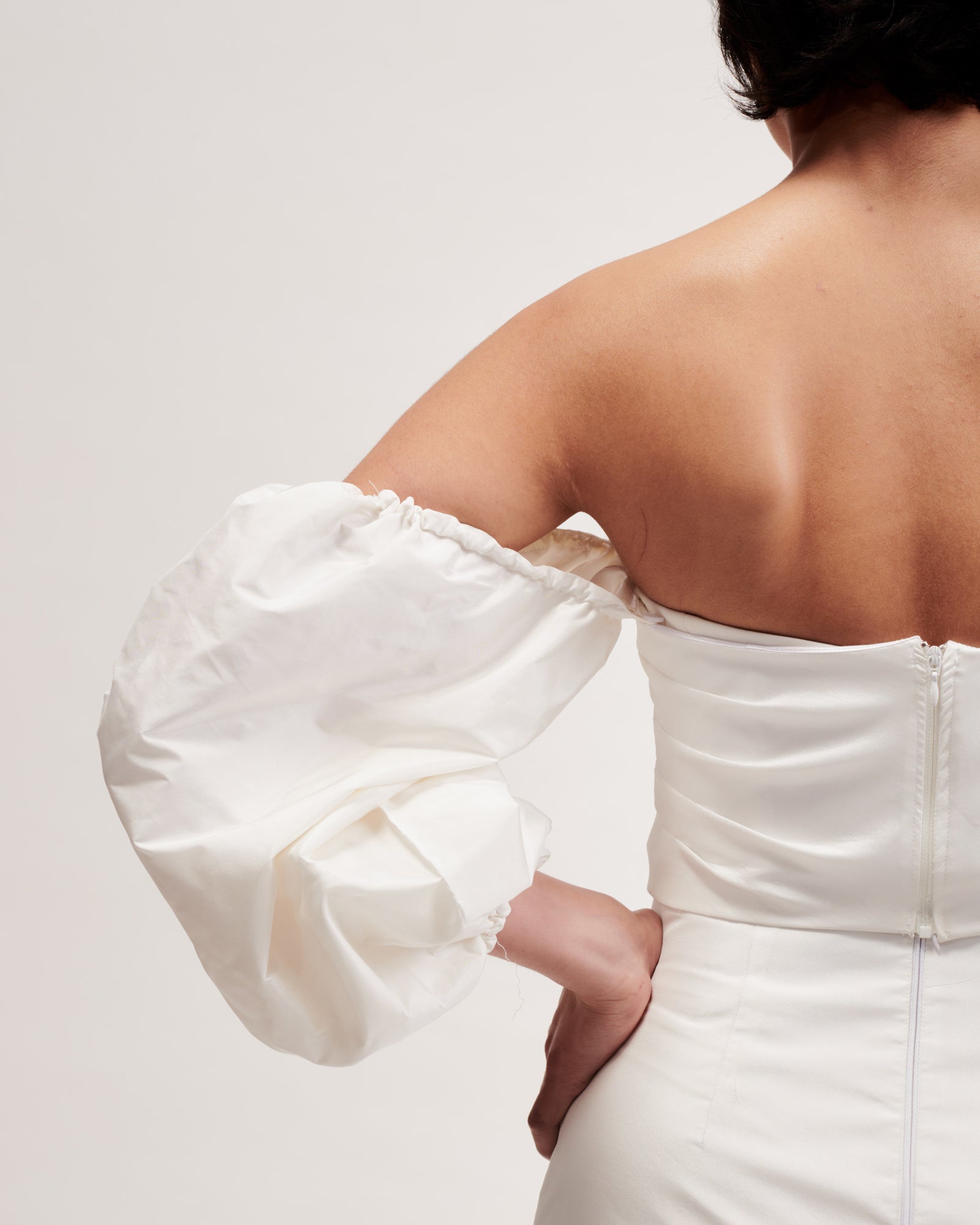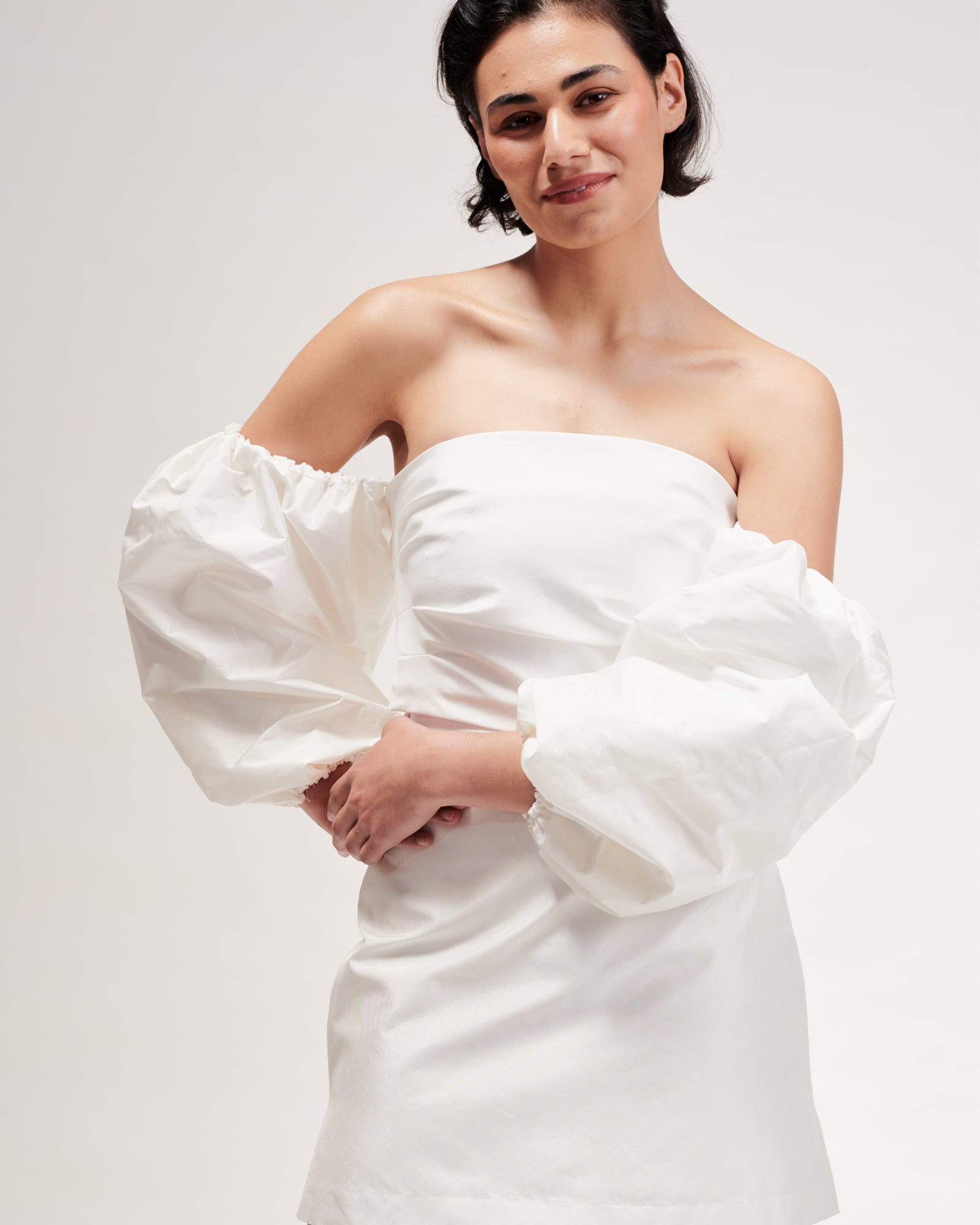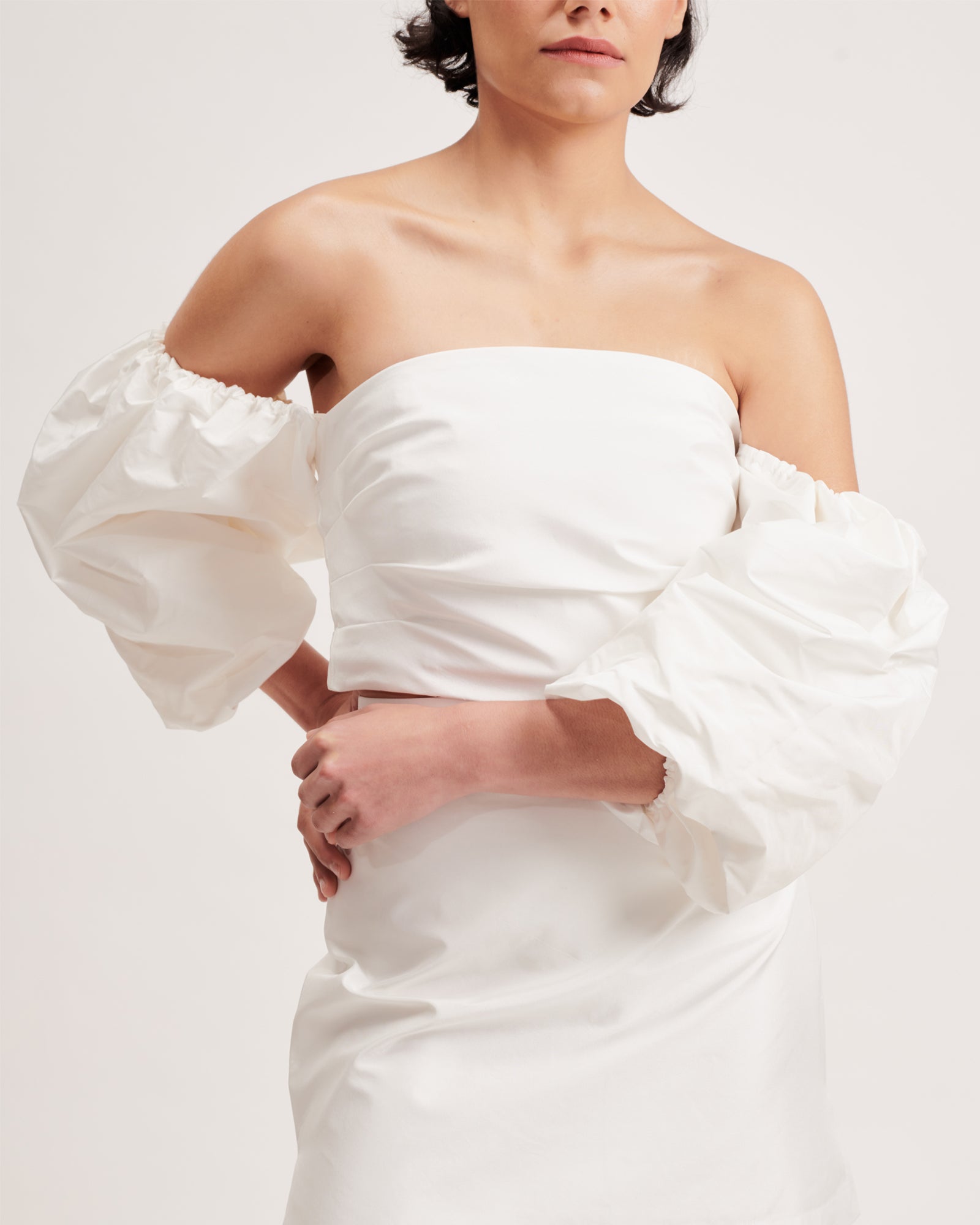 Designed to worn with the Sylvia Bustier, Sylvia Dress and the Athina Mini Dress, they can be popped on for a bit of a puffy sleeve moment, and easily whipped off to create a sleeker silhouette.