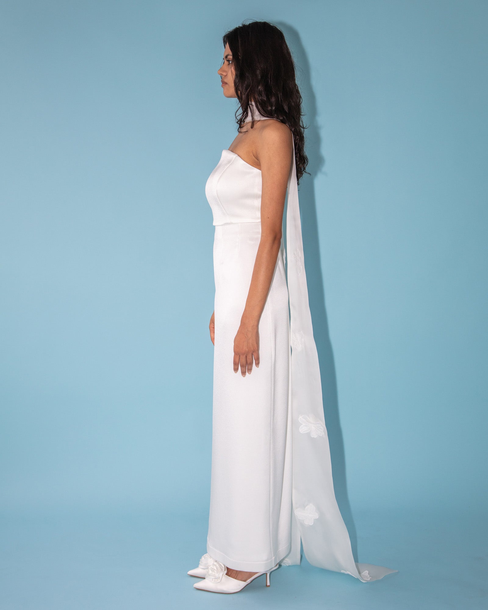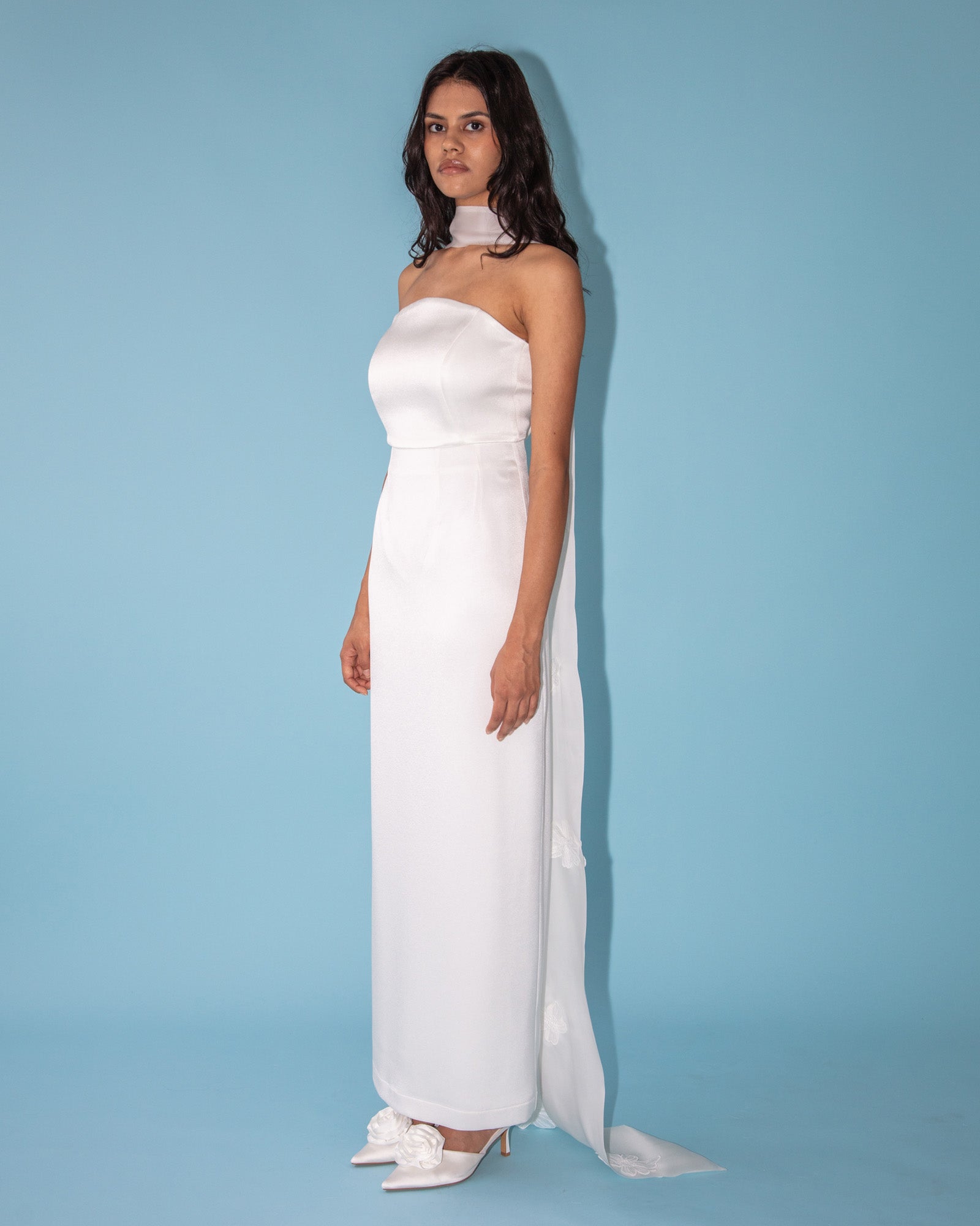 It is specifically designed to be layered underneath our shell dresses, or any of our tops, and paired with the Karina Bustier and the Heidi Scarf in Cosmos (pictured here). It can also be worn on its own as a standalone piece, or with any of our other separates, available here.