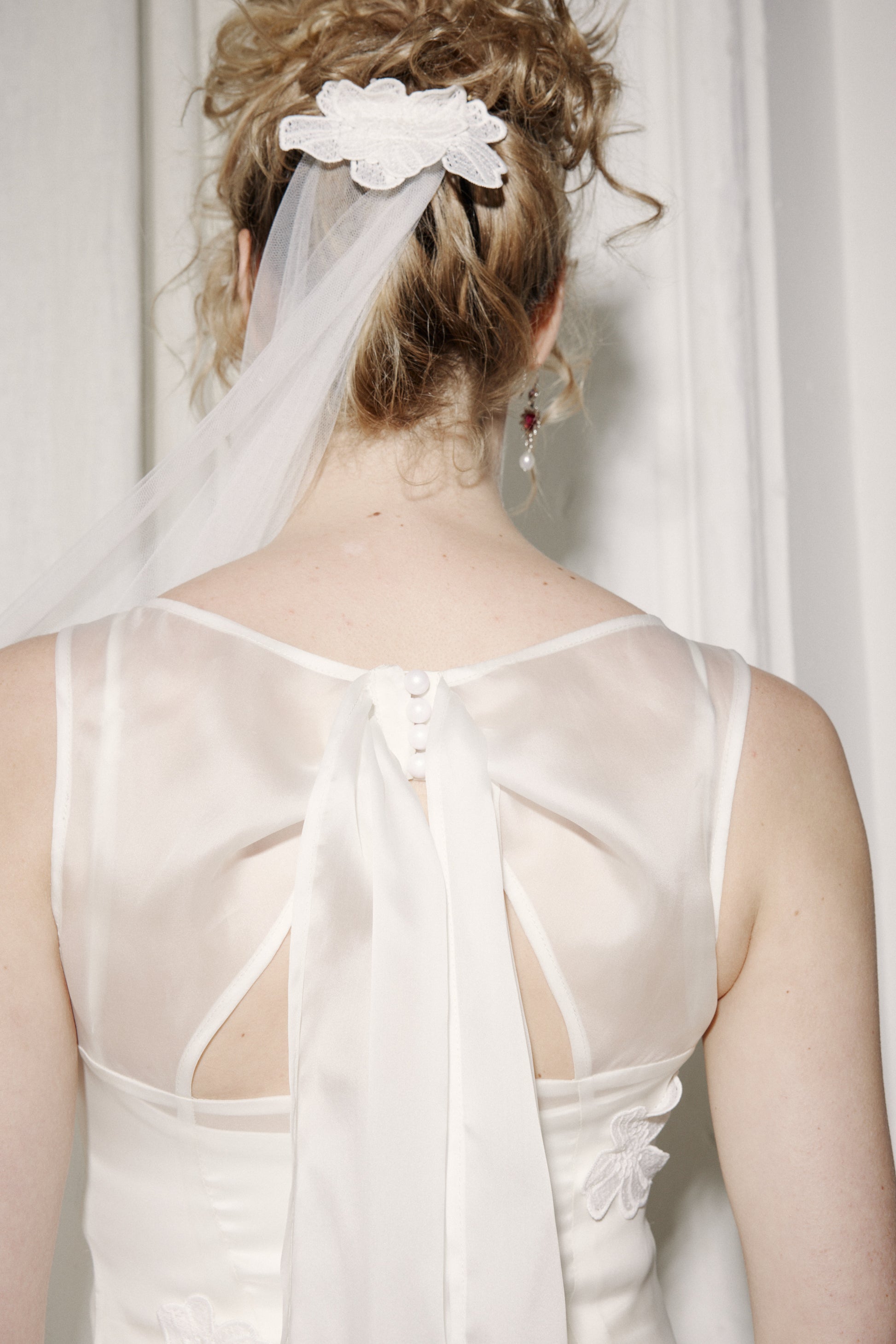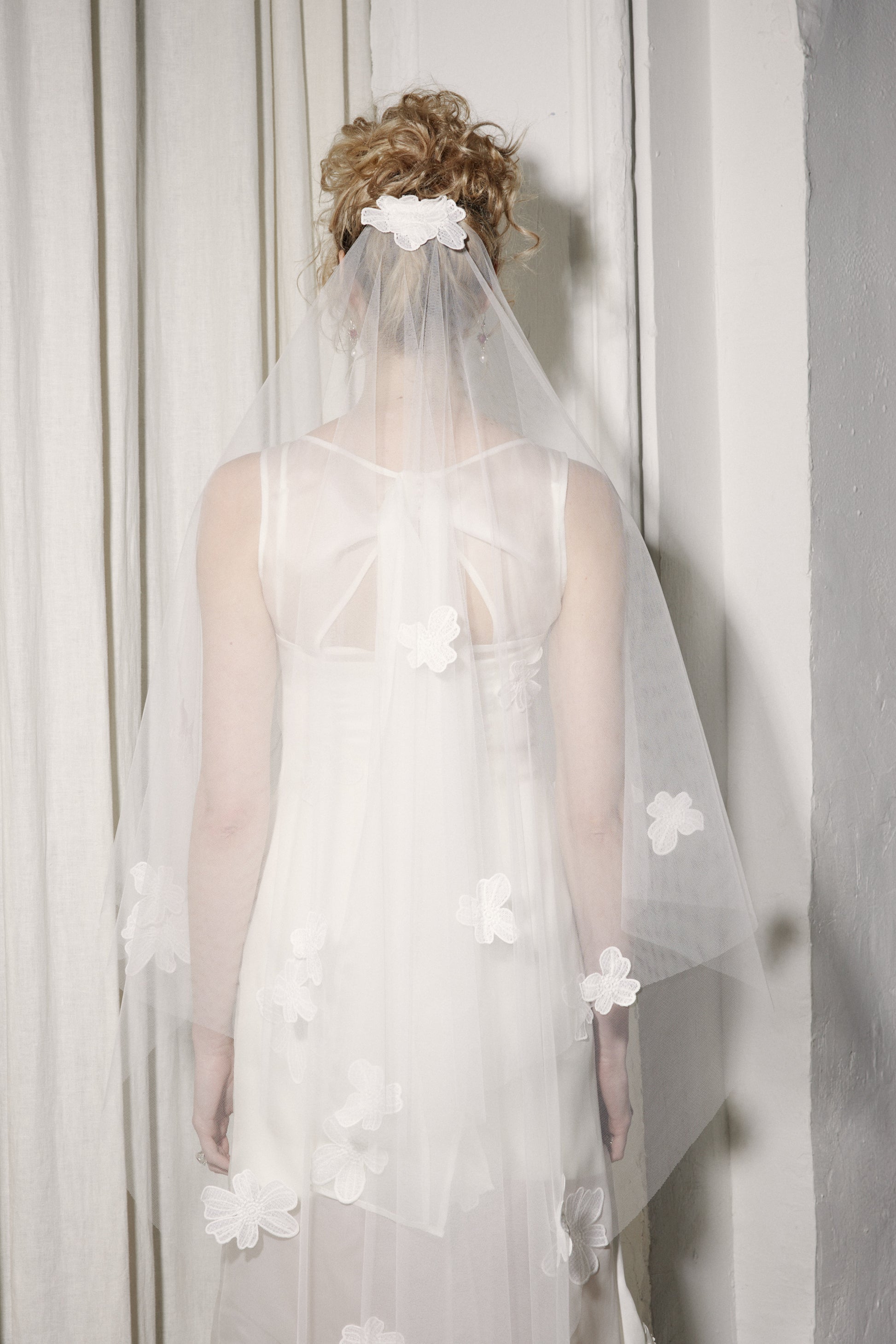 Worn here with the Tabitha slip mini dress, Donna bag and Cosmos veil.