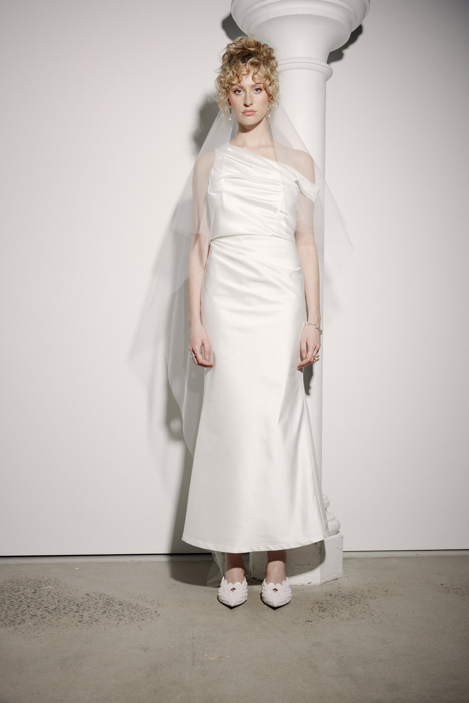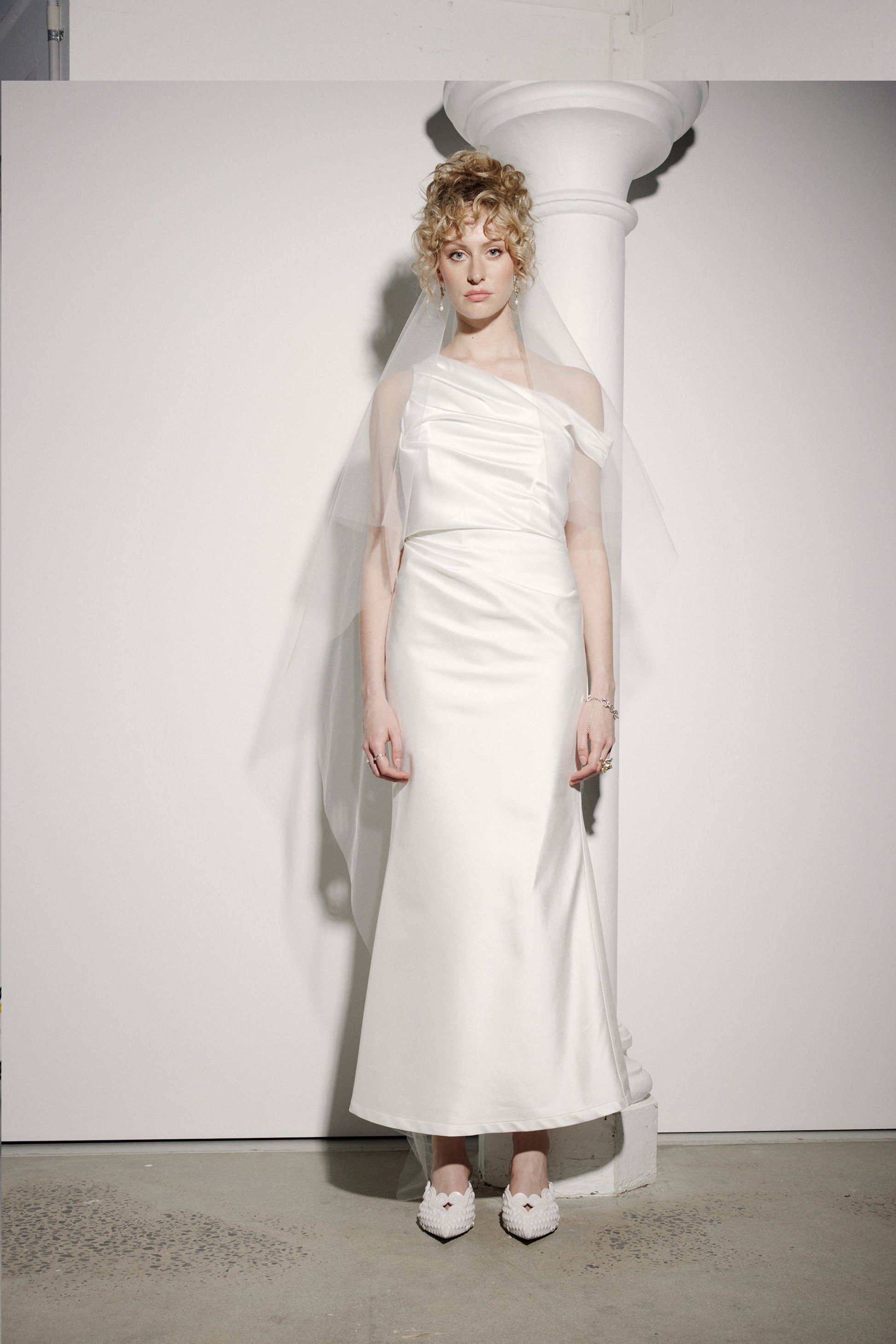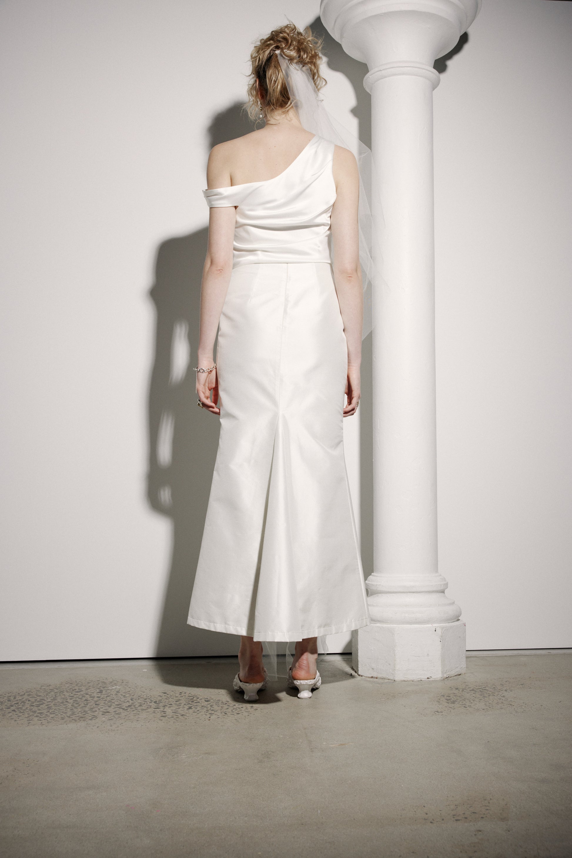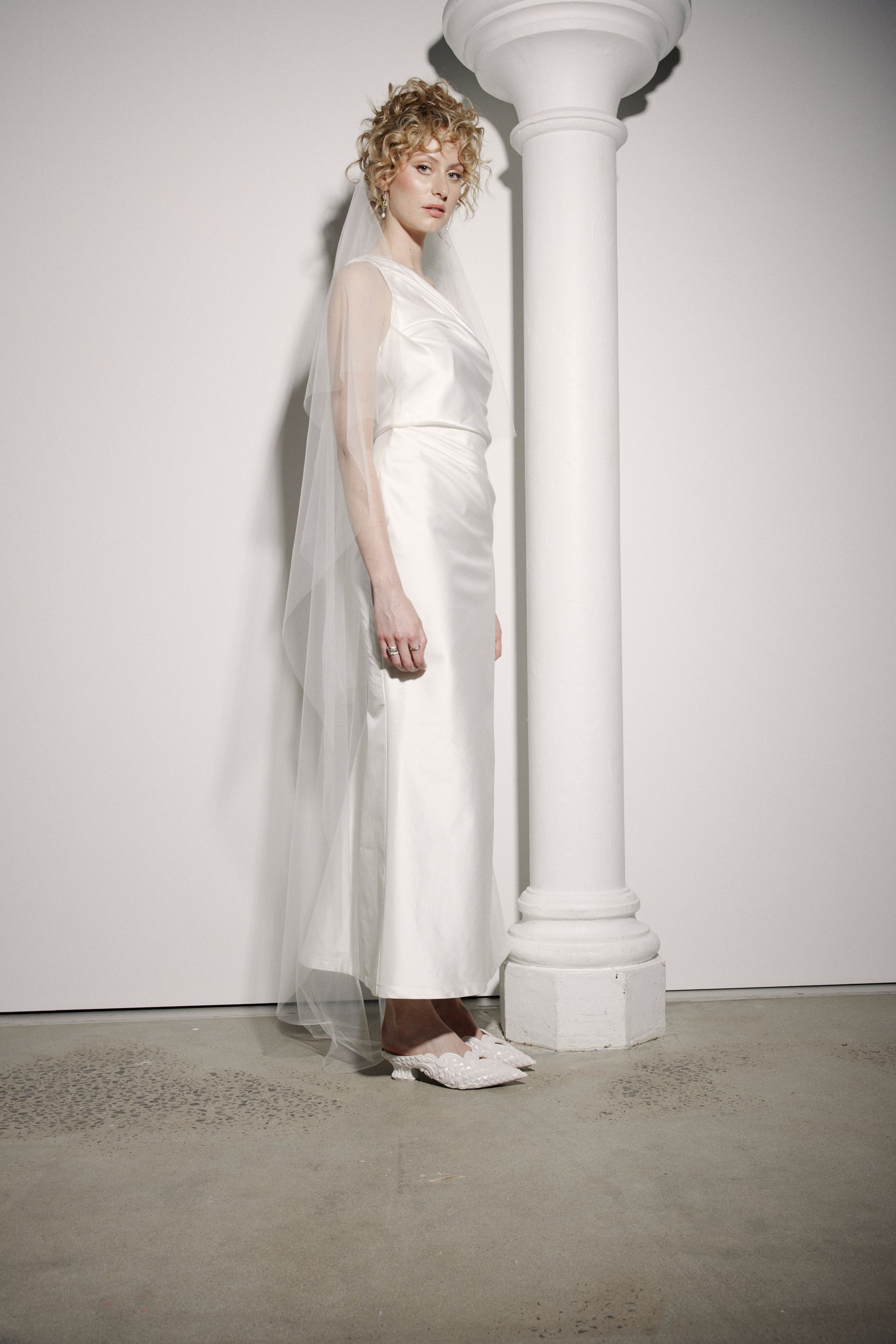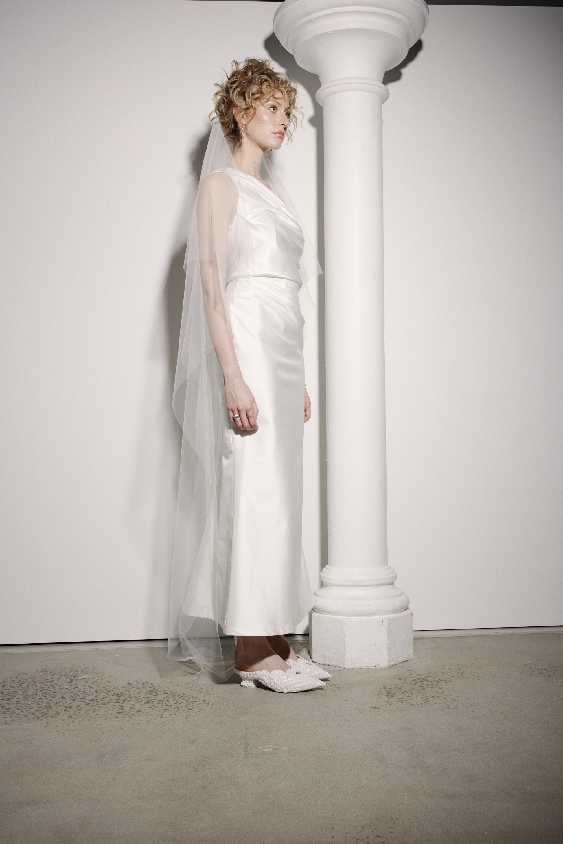 The Lillian Skirt is specifically designed to be worn with our Sylvia and Loren Bustiers n mind, but also looks rather fabulous worn here with the Sadie Top and the Aliesha Long Tiered Veil