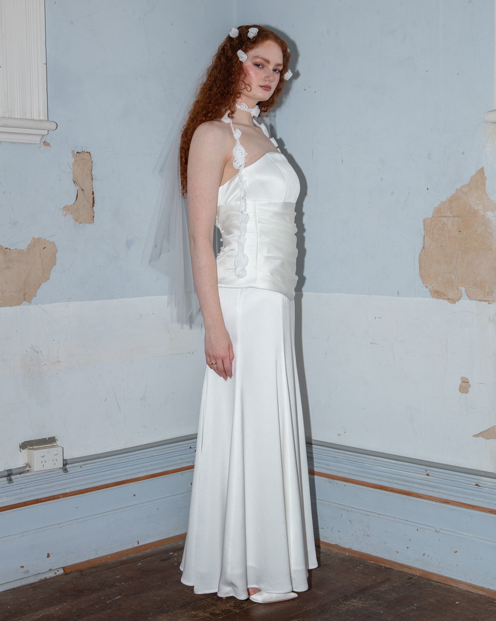 All Honeymoon pieces are handmade in our Melbourne studio. We would recommend allowing a 12-week minimum lead time for this garment. If you require this style sooner, please get in touch at hello@honeymoonstudios.net and we will do our best to accommodate you.