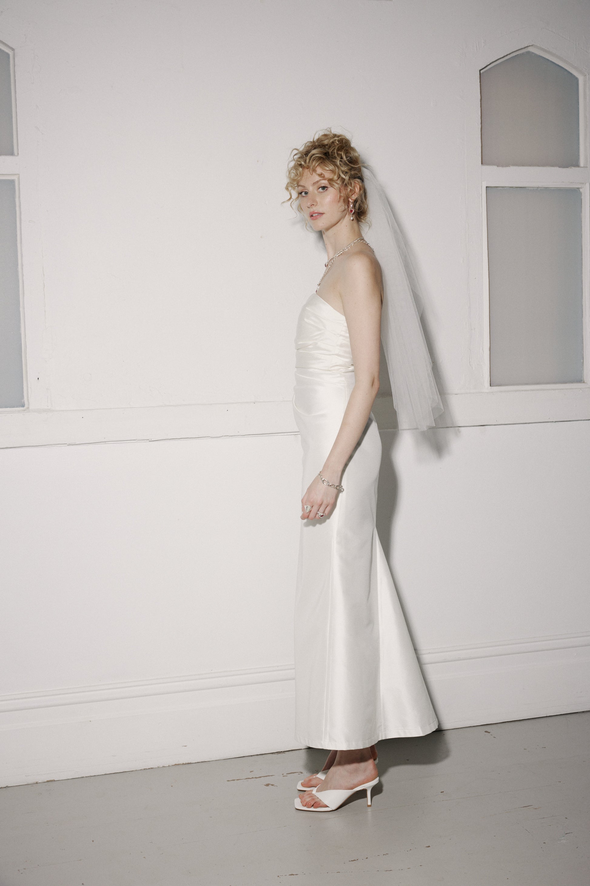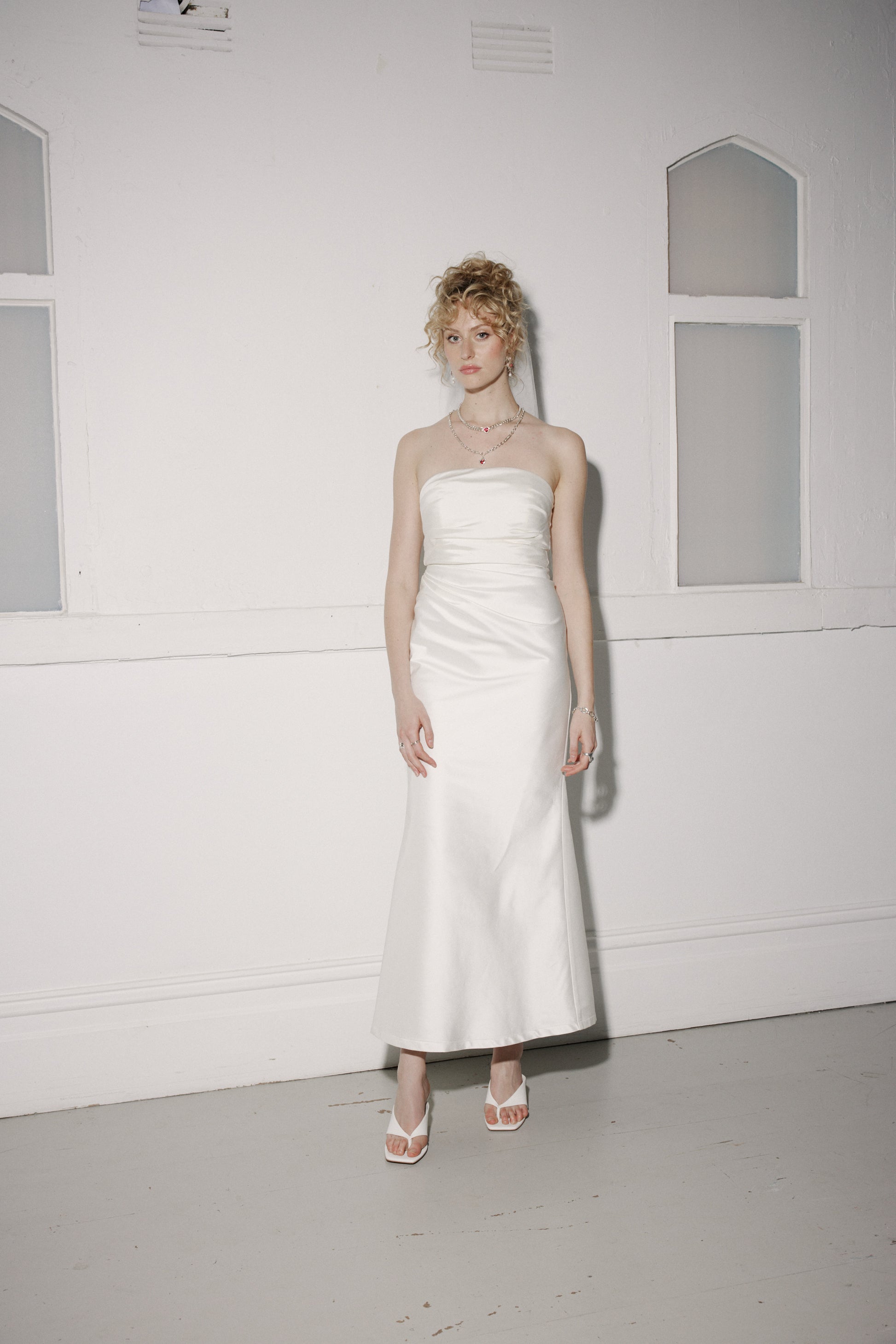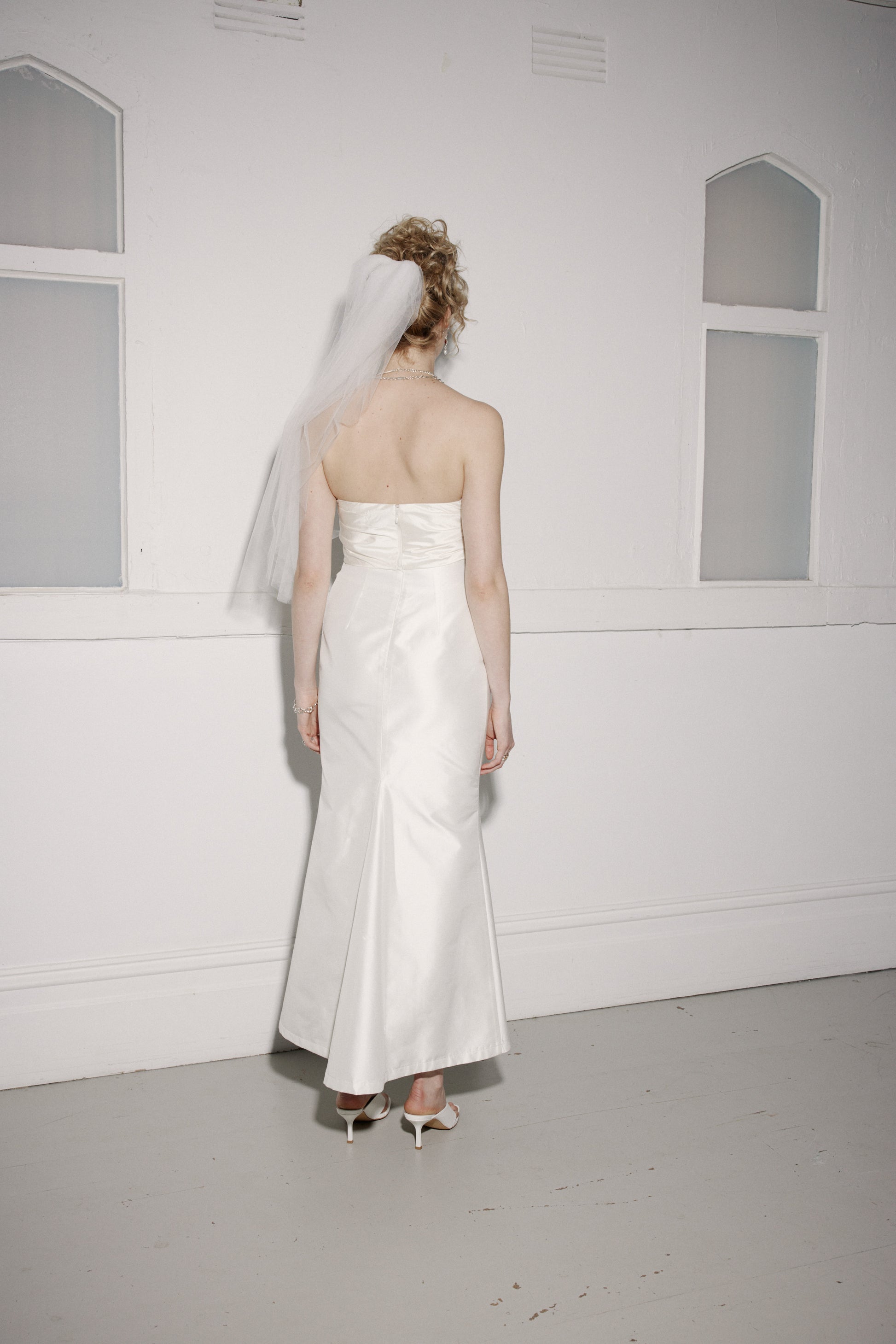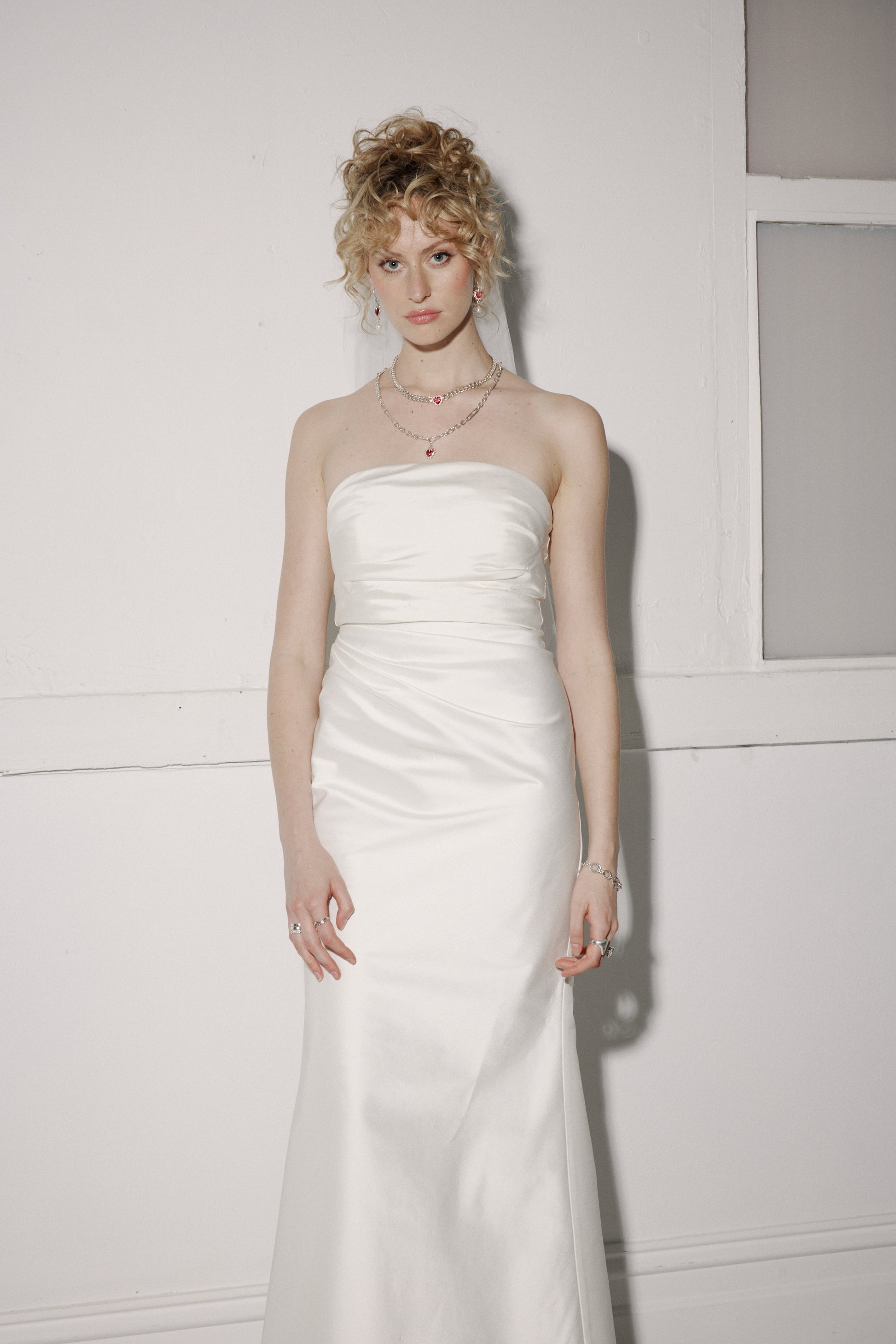 Classic and refined, the Sylvia is a structured bodice that is fully lined and boned, finished with symmetrical tucking and gathering. It is fastened with an open-ended invisible zip that comes together at the centre back.